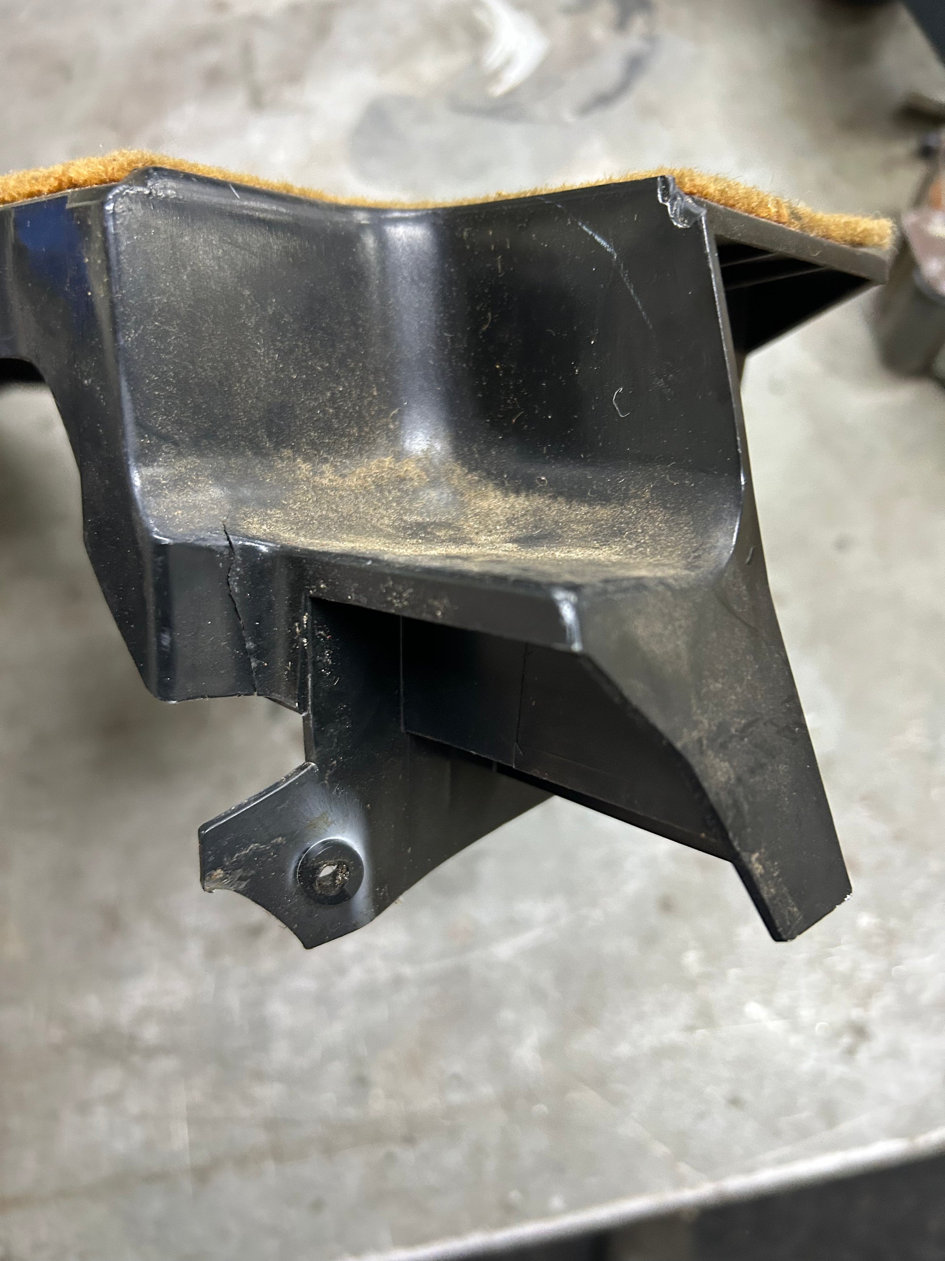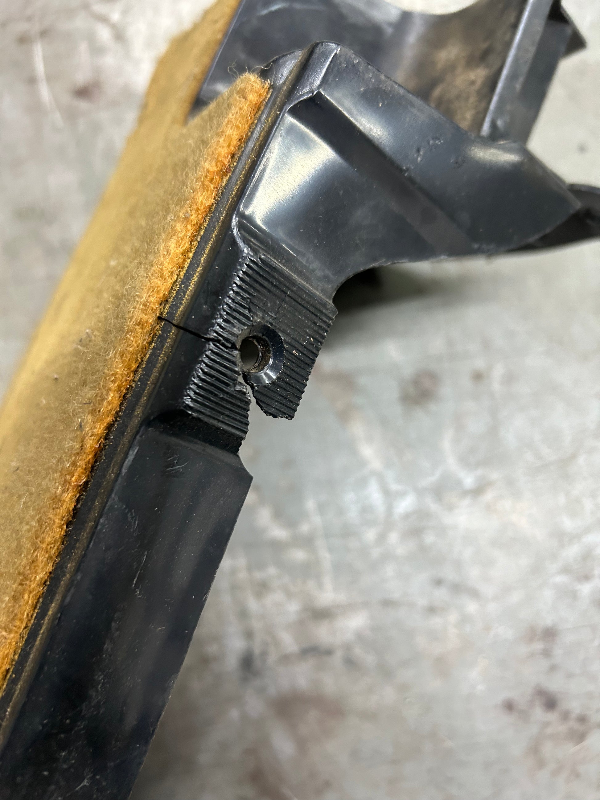 974-84 MK1 Rabbit right side parcel shelf speaker tray. Usable shape but does have some issues, a few cracks, a chip near the seat end and some screw holes also have chips. Carpet is in decent shape, never had a speaker installed in it. 175867762.