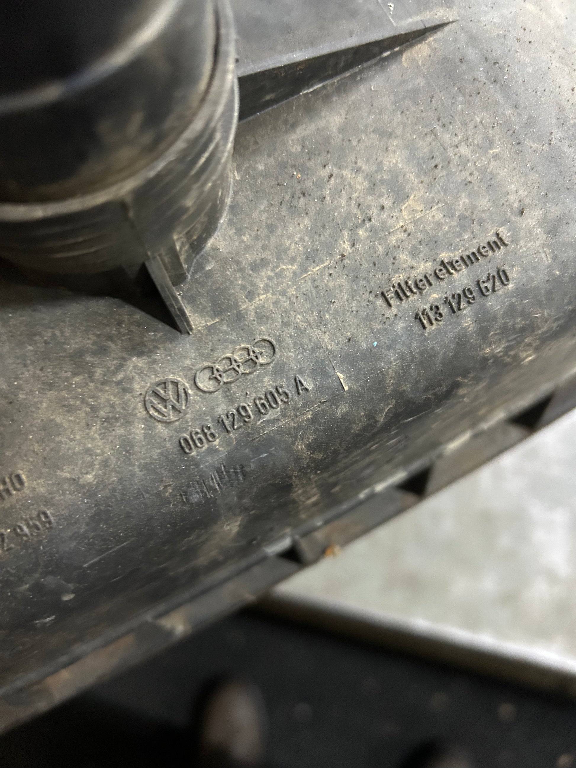 1978-80 MK1 Rabbit/Caddy truck 1.5L diesel air box. Good shape overall, snorkel piece does have a screw in it to hold in place and was done upside down. 068129605A.