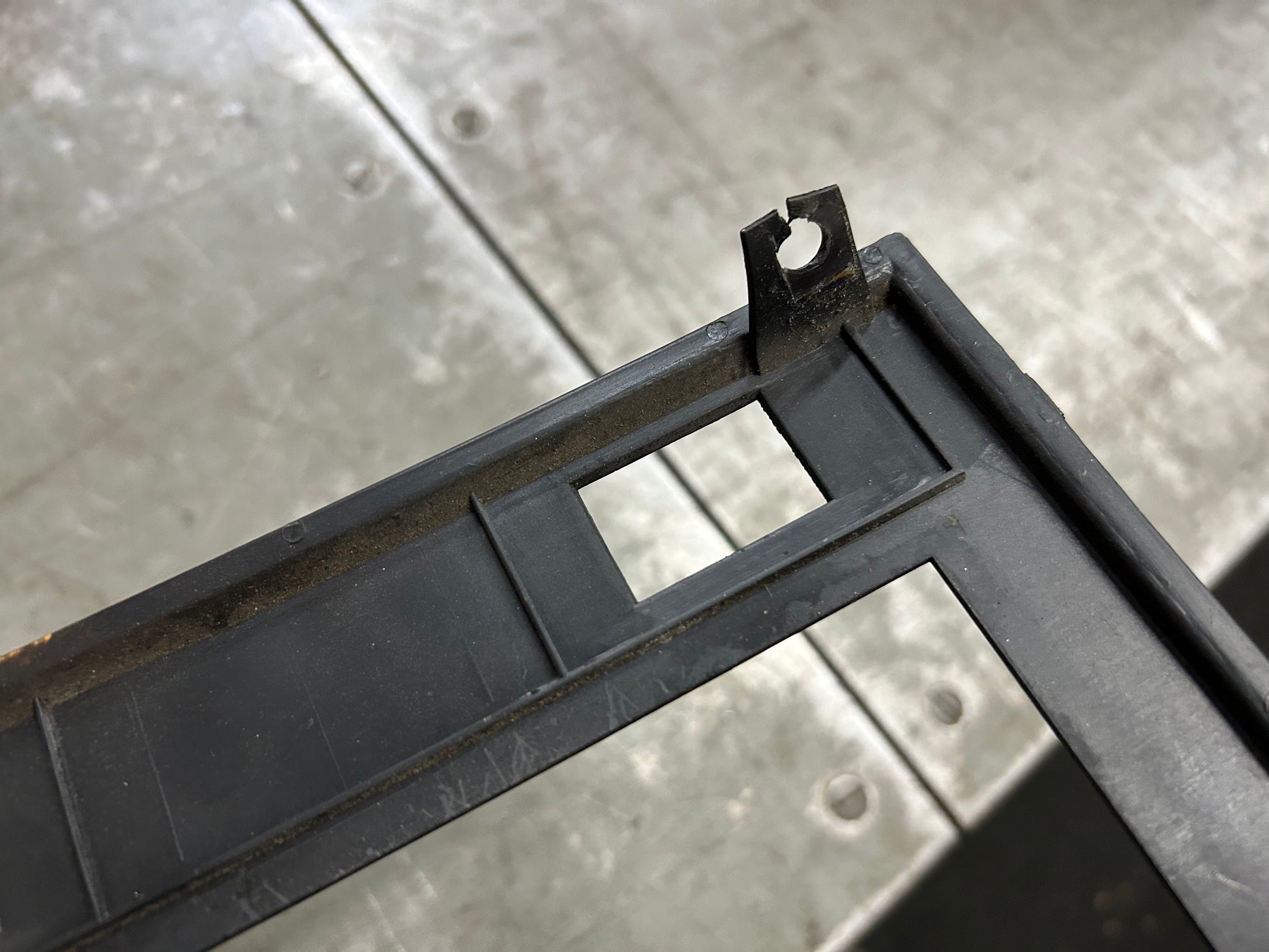 1981-84 MK1 Rabbit/Caddy truck diesel base model dash trim bezel. Relatively good shape overall, one crack on a lower mount tab and radio knob holes have been enlarged just a bit for an aftermarket unit. 175857061.