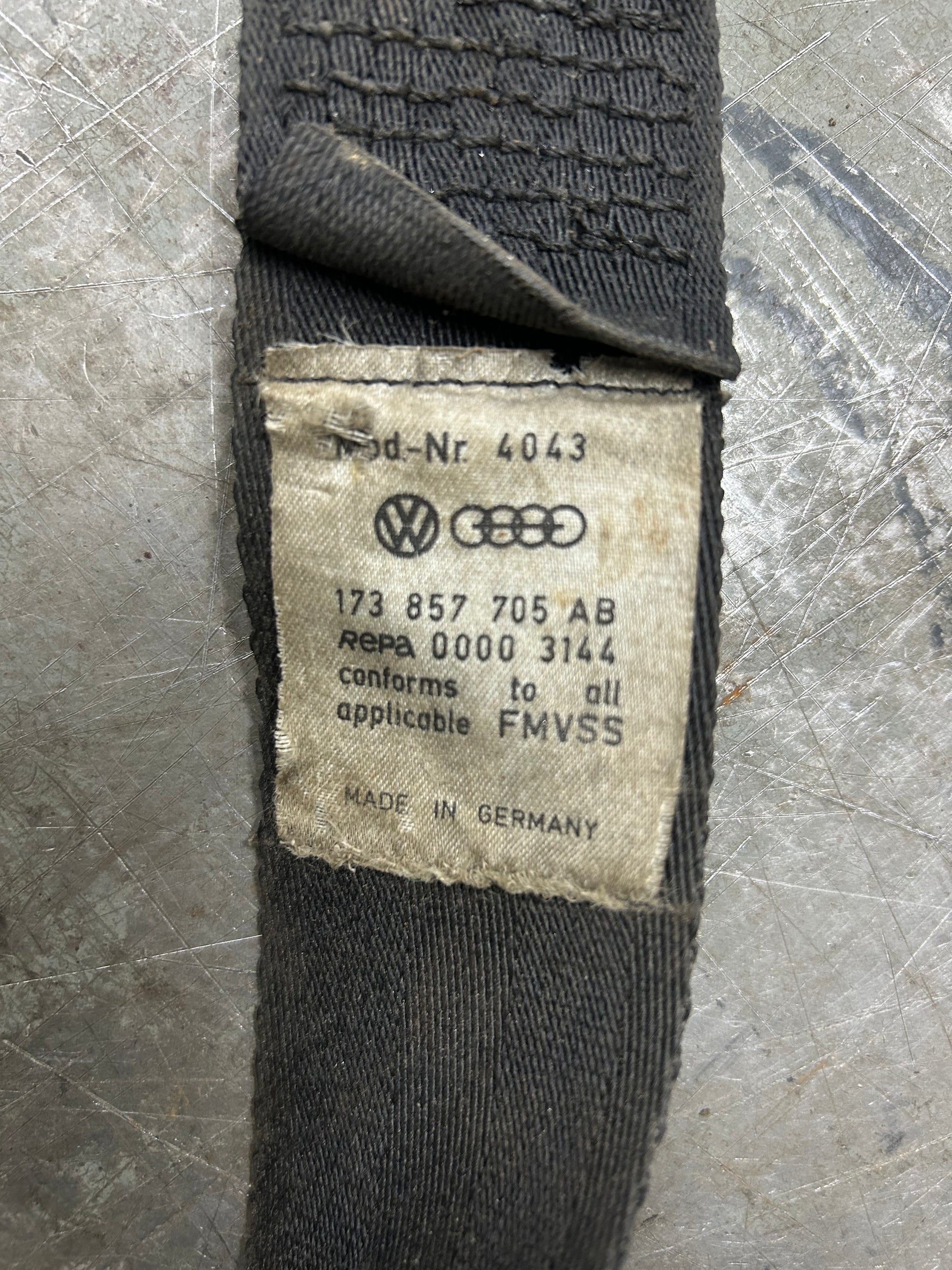 MK1 Rabbit/Jetta/Scirocco sedan 3 point seat belt. Belt is in decent shape and re-tractor works, buckle/upper pivot has rust pitting. Will include mounting hardware. 175857705AB.